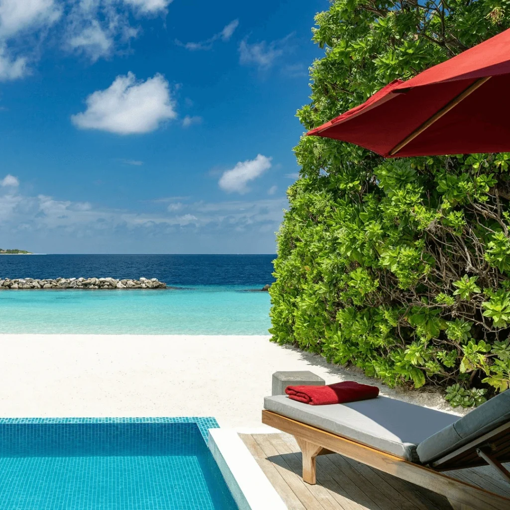 Guests usually arrive at Malé International Airport, then take a scenic seaplane transfer directly to the island. Alternative options may include a domestic flight plus speedboat transfer, depending on scheduling.