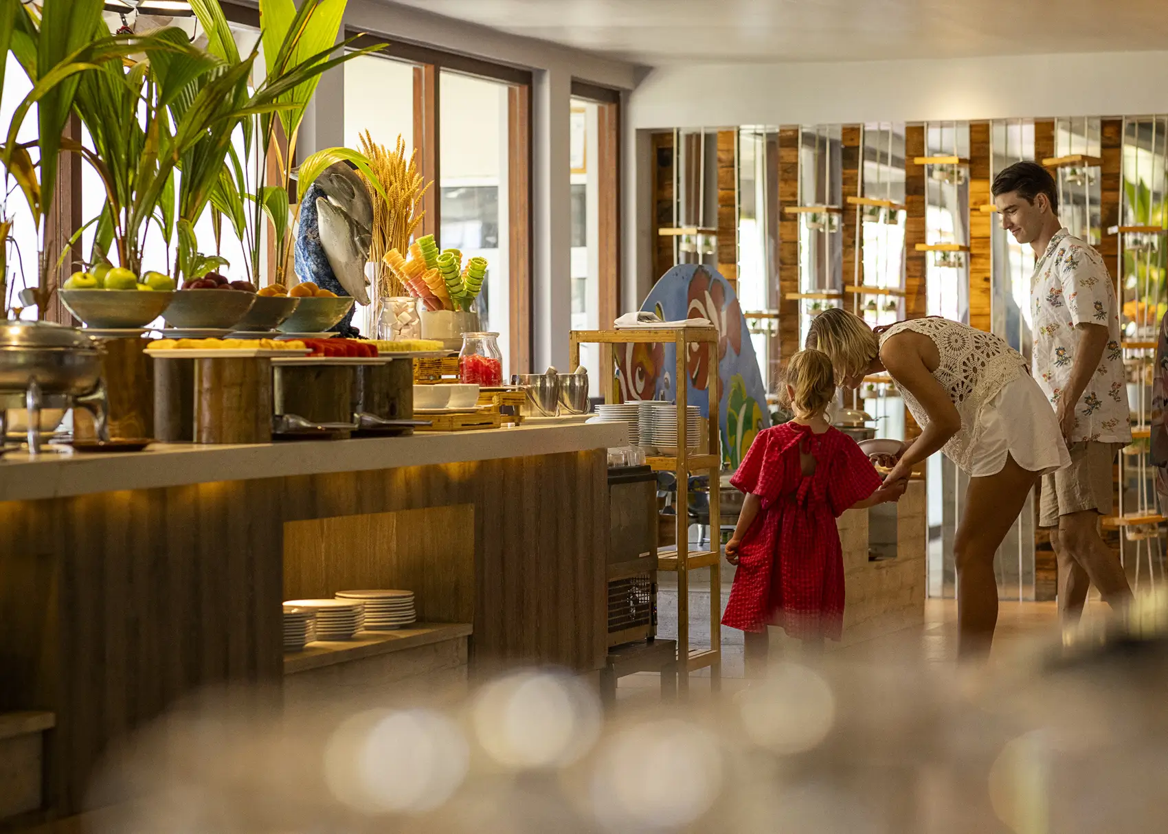 Dhigali offers multiple restaurants and bars, featuring international and local cuisine from buffet breakfasts and à la carte Asian and Mediterranean dishes to snacks, beachside grills, and sunset cocktails.